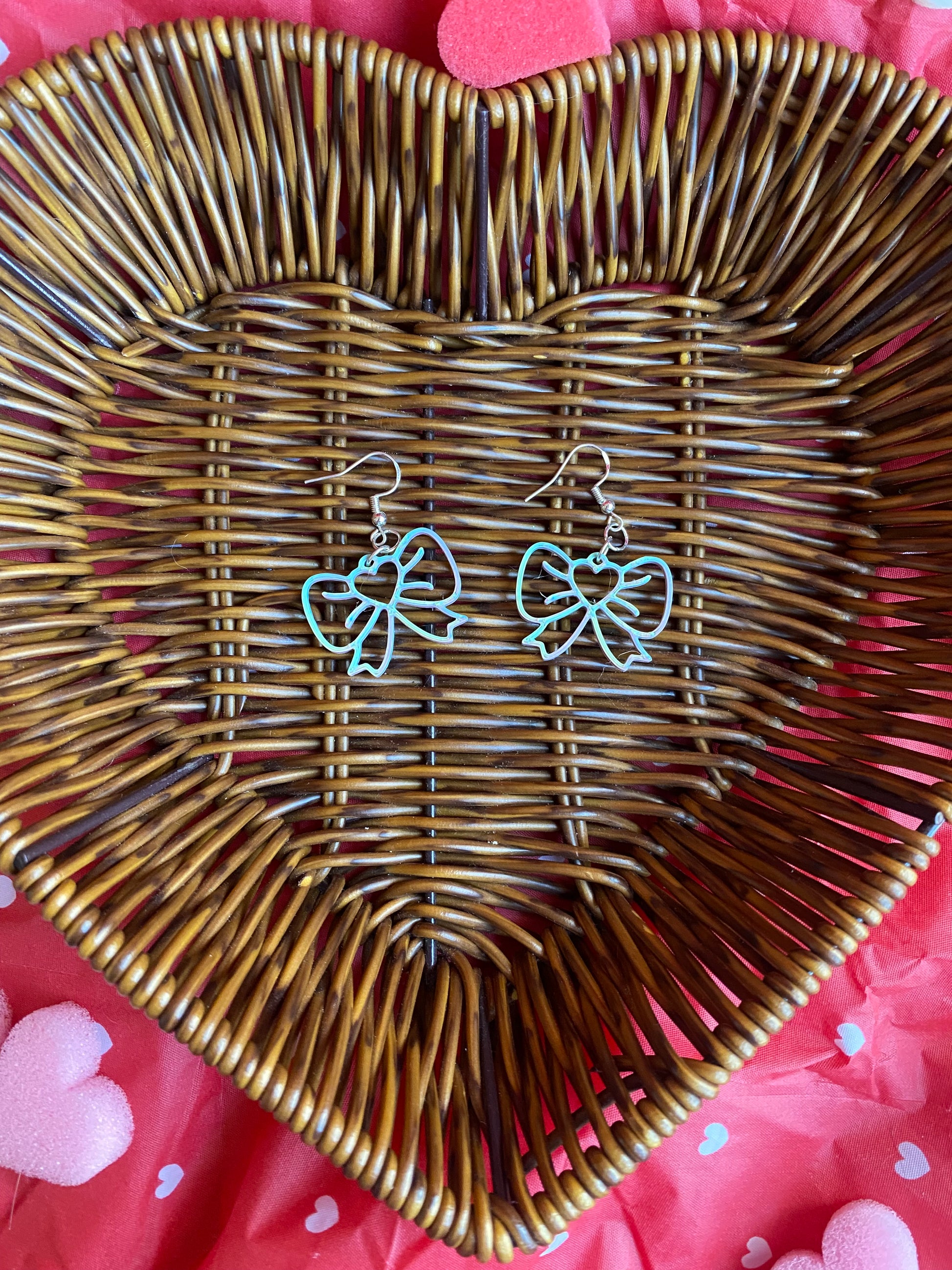 3D printed Valentine Bow earrings in two color options red and rainbow color shift.